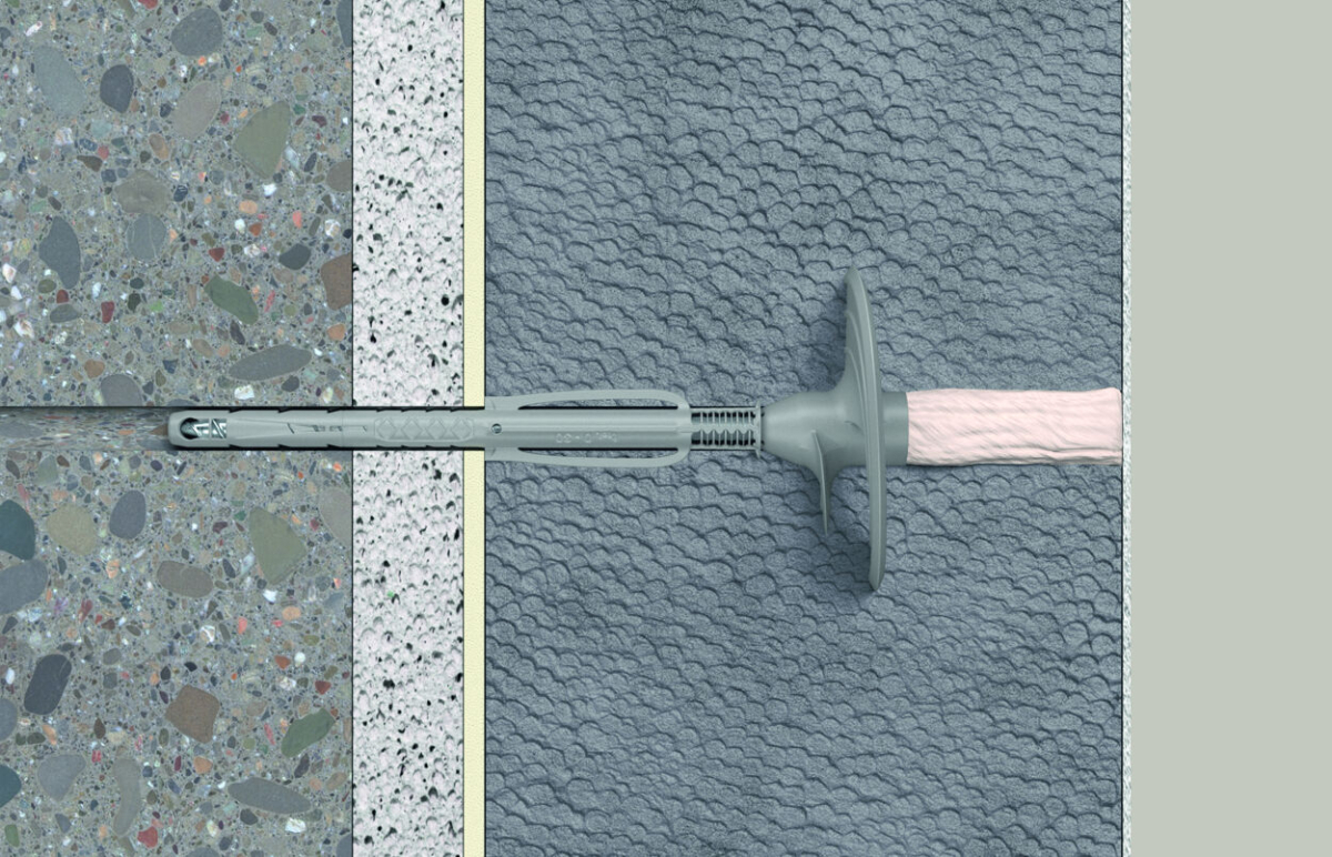 Abstandsmontagesystem „TherMax“ von fischer für mittelschwere bis schwere Anbauteile am WDVS