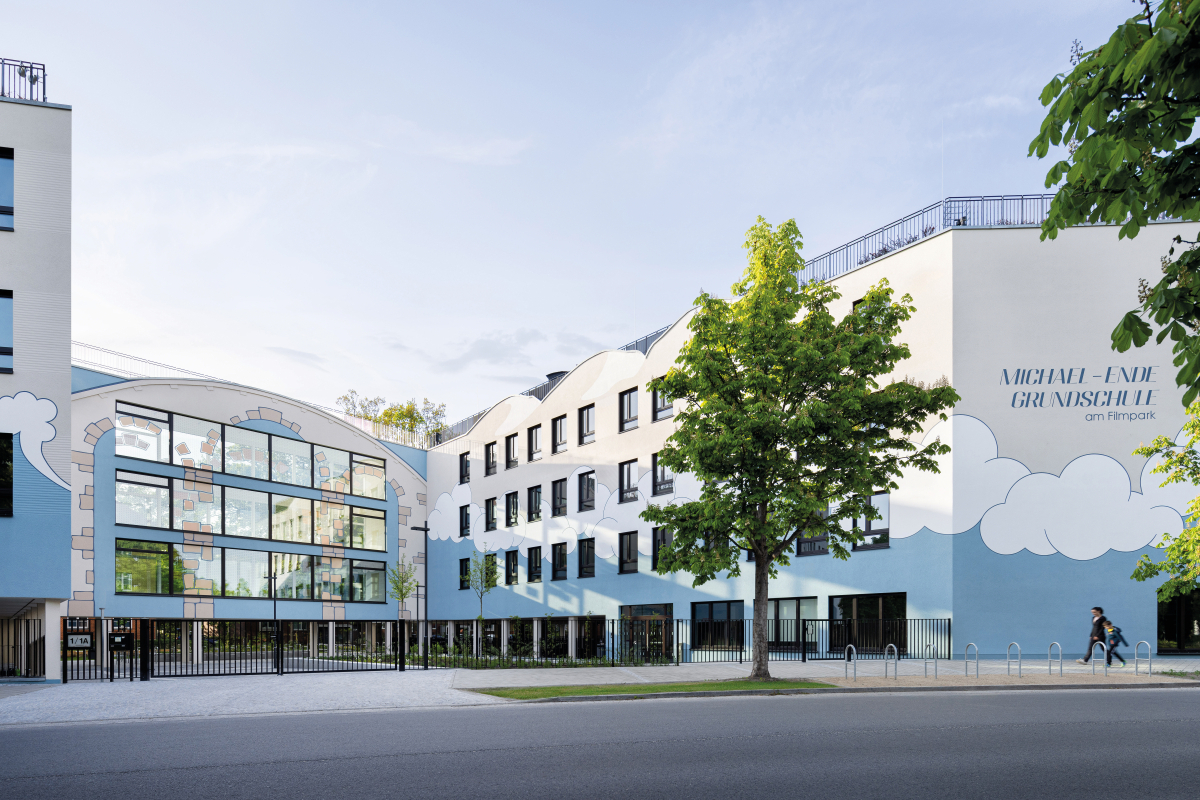In Potsdam macht die neue Michael-Ende-Grundschule ihrem Namen alle Ehre – greift sie doch in ihrer Gestaltung zentrale Schauplätze aus Endes Kinderbuch-Klassikern auf. Sie ist die erste öffentliche Schule am Filmpark Babelsberg und Teil einer großen städtebaulichen Entwicklung rund um den Themenpark der Film- und Medienstadt.