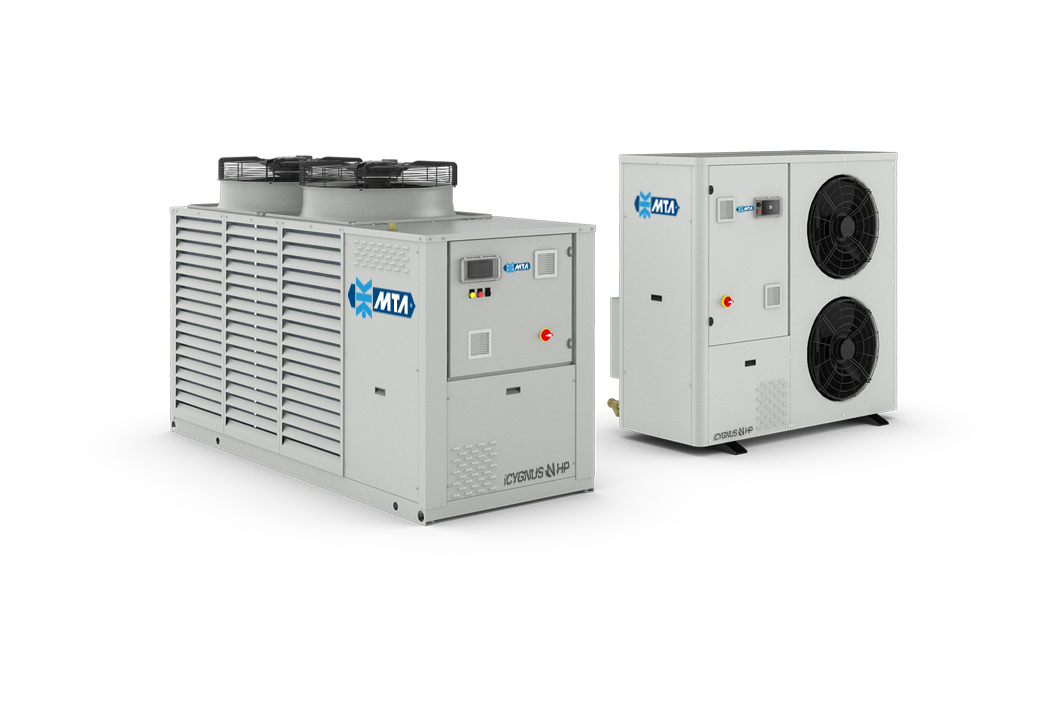 MTA bietet Kältemaschinen sowohl als Luft-Wasser-, als auch als Wasser-Wasser-Wärmepumpen. Der Kühlkreislauf der Kältemaschine als Wärmepumpe liefert sowohl Kalt- als auch Warmwasser und bietet so flexible Lösungen für Anwendungen in der Klimatisierung und für Brauchwasser.
