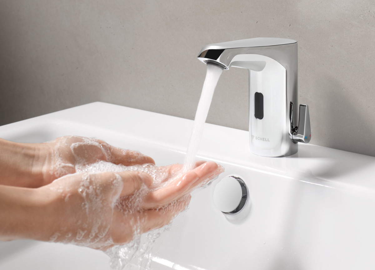 Bei berührungslosen, elektronischen Armaturen von Schell ist ein Infrarotsensor im Armaturenkörper verbaut, der den Wasserfluss startet, so-bald sich Hände im Sensorbereich befinden, ohne dass die...