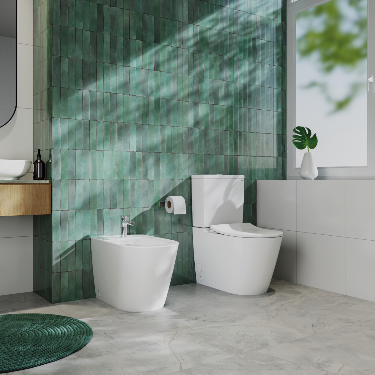 Manchmal sind im Bad standfeste Lösungen gefragt. Besonders bei Sanierungen in Alt- oder Bestandsbauten sind flexible Konzepte notwendig. Hersteller Toto hat deshalb sein Sortiment um bodenstehende Keramiken für „Washlet“, WC und Bidet erweitert.